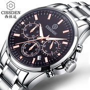 CISSDEN西丝达 三眼精钢大表盘多功能石英男士手表