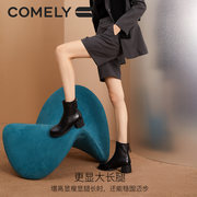 comely康莉3A816BDD3-265055 羊皮法式圆头粗跟短靴