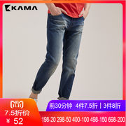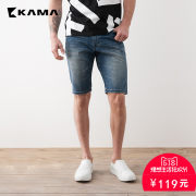 KAMA卡玛男士夏装透气合体直筒五分牛仔短裤