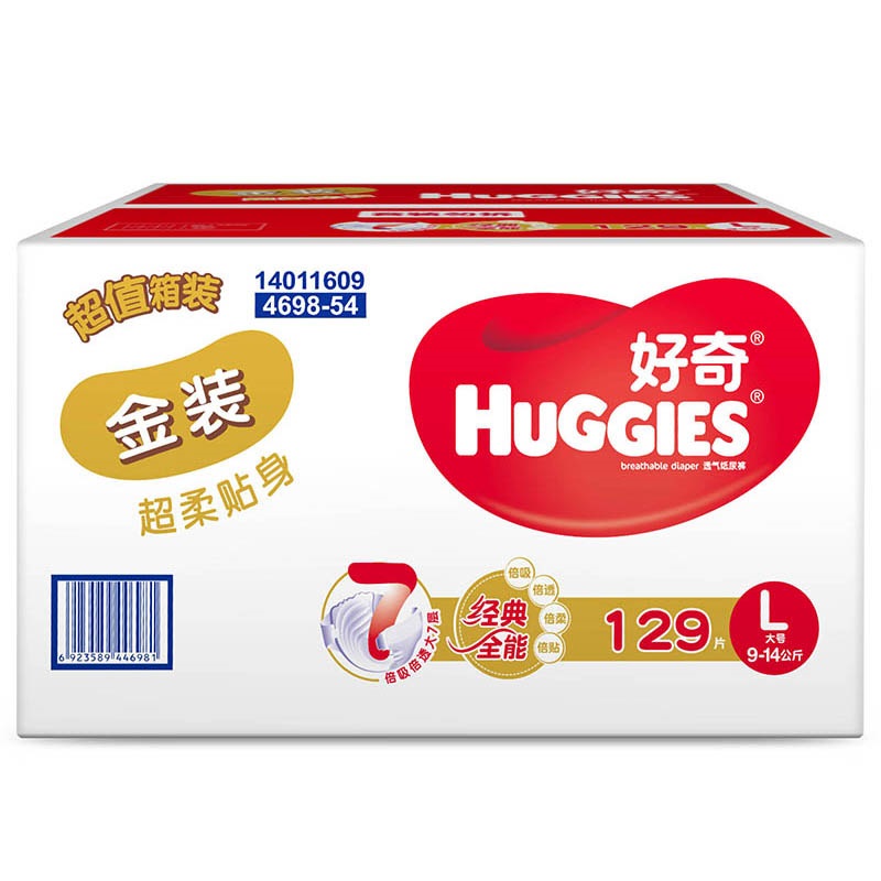 HUGGIES好奇 金装超柔贴身新生儿纸尿裤L129片*2件